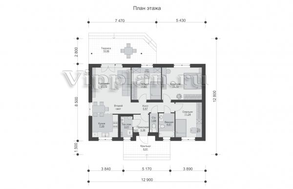 | Размеры дома: | 12.8м×12.9м |